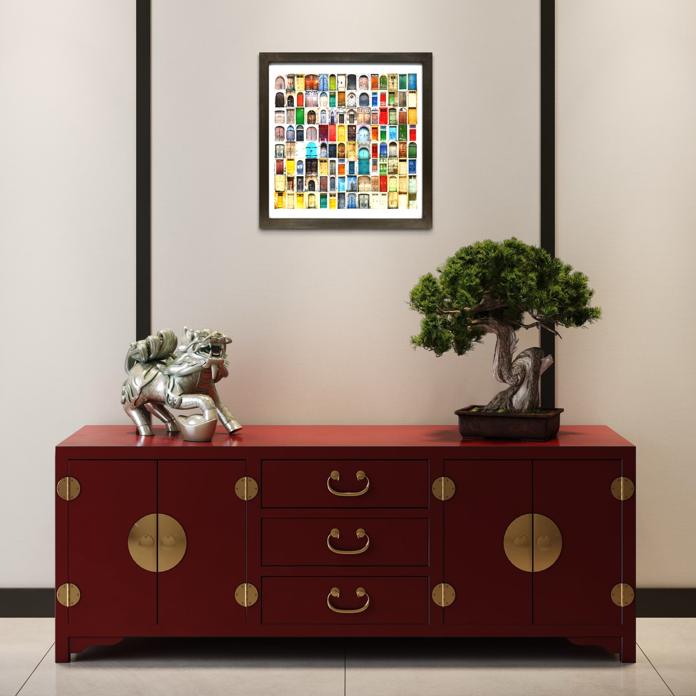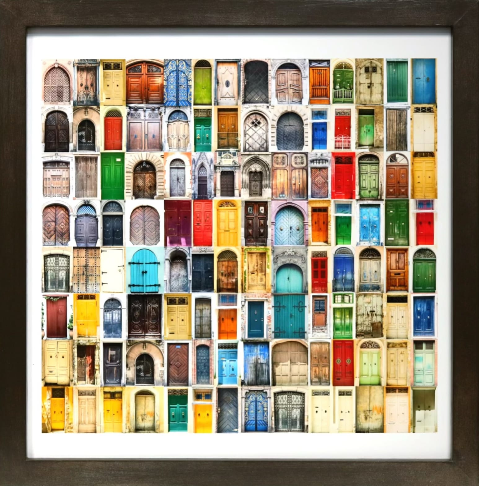 An extraordinary photographic collage showcasing over 100 unique doors from across the globe in a mesmerizing grid. Each portal tells its own story through weathered wood, vibrant paint, and distinctive architectural character. A celebration of global diversity and the universal symbol of possibility and welcome.
